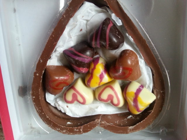 The Open Your Heart to Me box includes a milk chocolate shell heart, with 8 chocolate hearts. The box itself is gorgeous, very classy and contemporary. The courier driver obviously wasn’t the best driver as the shell was broken on delivery, but I guess most people buying gifts would buy in store – would definitely recommend that as although the brown box (filled with gorgeous pink shredded paper) was marked fragile, it didn’t help.